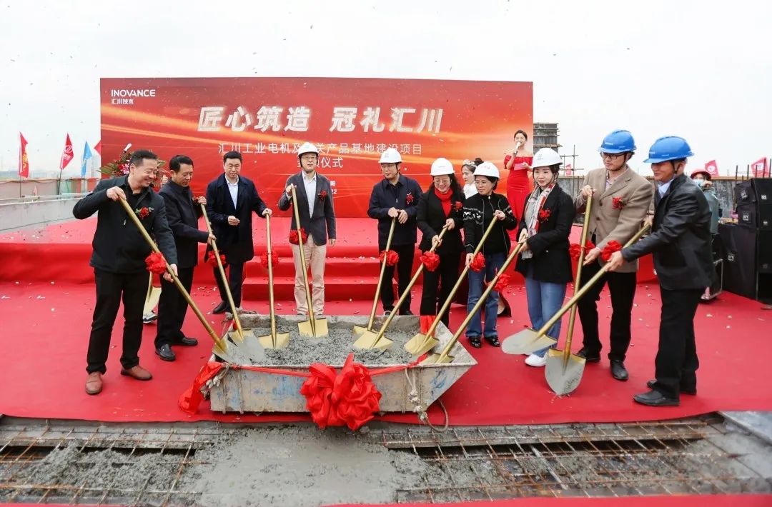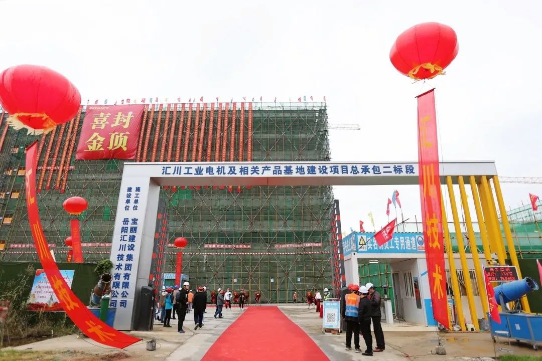 匯川技術岳陽伺服電機生產基地封頂儀式現場。